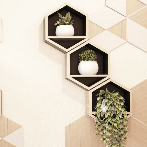 Another idea is the magic of three. Create a stunning visual art piece of three small pots whether hanging or on staggered shelving.