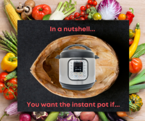 An instant pot allows you to cook more with less dishes. You can also buy one appliance that serves many purposes when space is a factor. My caution with an instant pot is because it is able to do so much, it will be more complicated to use. I recommend using only instant pot recipes with this appliance and read the reviews to see how readers adjusted cooking times, temperature, ingredients, etc.